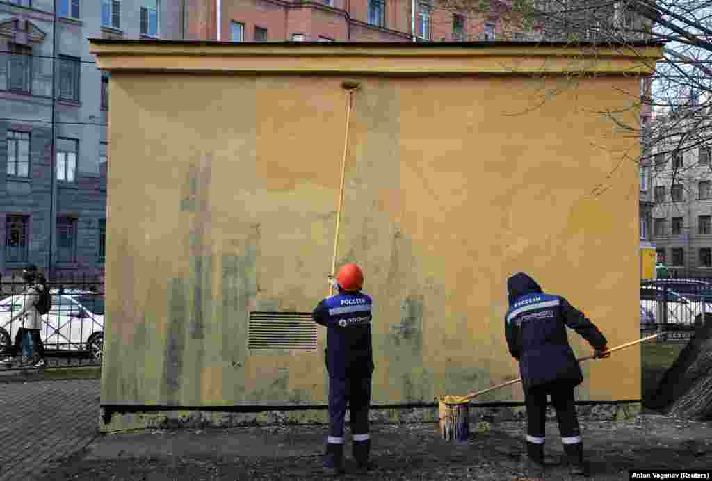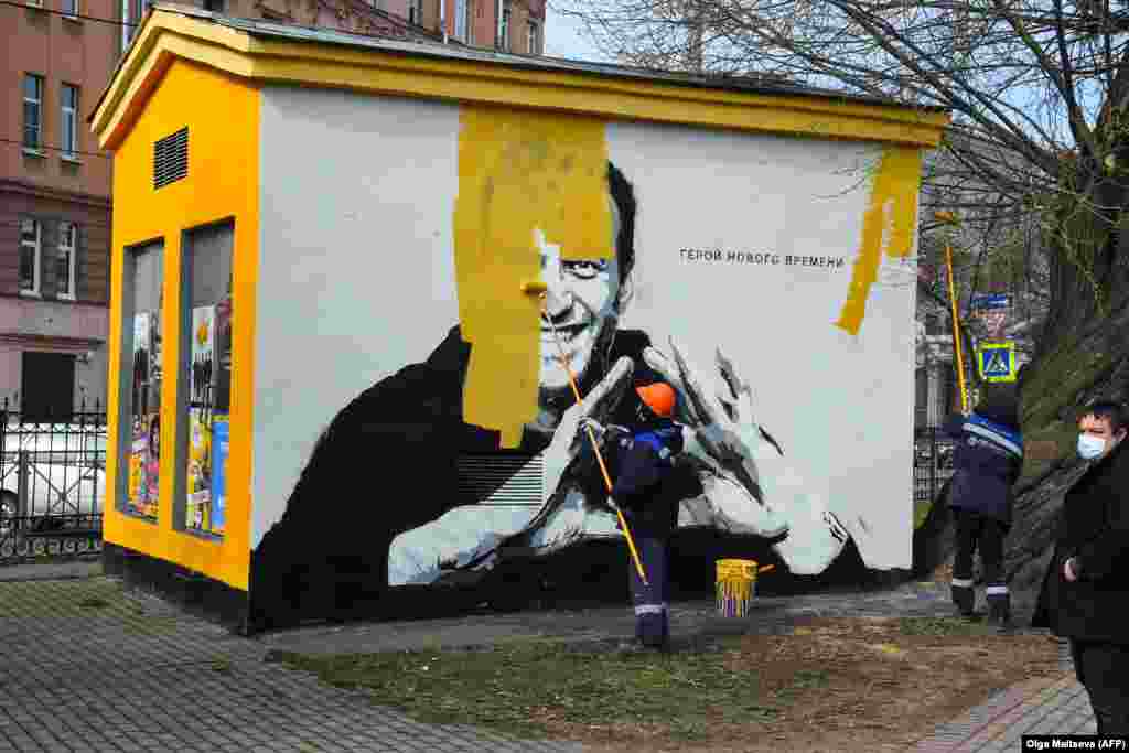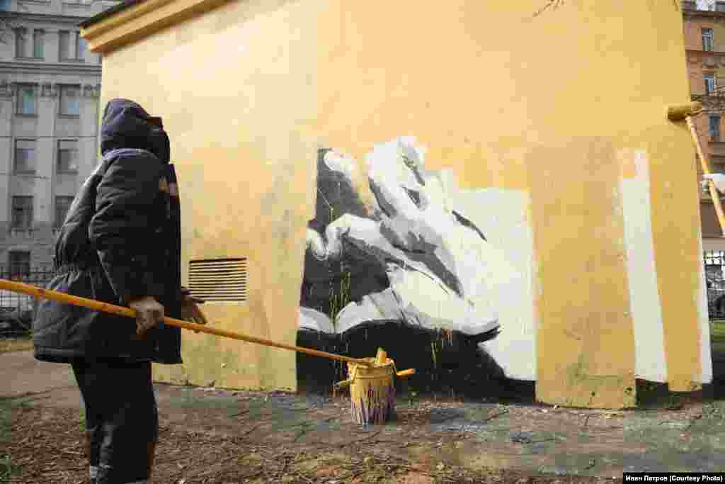 В центре Санкт-Петербурга, в Пушкарском саду, в ночь на 28 апреля появилось граффити с оппозиционным политиком Алексеем Навальным и надписью "Герой нового времени". Коммунальщики закрасили его желтой краской через четыре часа. Вот как это было