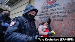 В Москве у здания МВД на Петровке возобновились задержания активистов и участников одиночных пикетов в поддержку арестованного на 15 суток журналиста Ильи Азара.