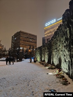 Люди в Москве возлагают цветы к Соловецкому камню в память об Алексее Навальном, 16 февраля 2024 года Фотография: Reuters