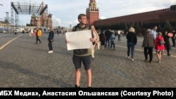 В Москве полицейские задержали активиста Максима Кондратьева, который вышел на Красную площадь с одиночным пикетом за свободу слова и мирных собраний. Активист держал в руках чистый лист бумаги.