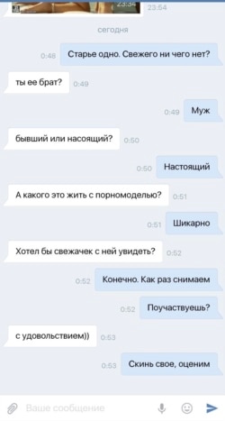 "Да, в молодости жена снялась в нескольких порнофильмах. Я об этом знал. Сейчас она образцовая жена. О таких можно только мечтать”, – написал корреспонденту РС один из мужчин, сказавший также, что среди писавших было "адское число дрочеров, которые пытались познакомиться [с женой]. Если бы мы не закрыли свои страницы и моя жена не была бы примерной девочкой, то мы бы уже могли получать деньги с ютуба, – говорит он. – Количество просмотров зашкалило за одну ночь".