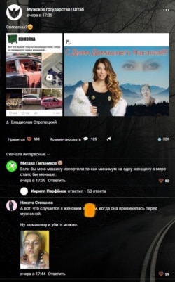 Это пост в телеграм-канале Владислава Позднякова, основателя сначала паблика в соцсети "ВКонтакте", а потом и движения "Мужское государство" (МГ). За изобилующими сексуальными подробностями текстами с очевидной фиксацией на "крепких набалдажниках", "арабских обрезах", "черных джун-джунах" и "корнишонах русаков" следует ссылка на закрытый канал с порноматериалами, а также на страницы найденных Поздняковым женщин вконтакте и инстаграме, страницы их сегодняшних мужей, родителей и даже несовершеннолетних детей. На страницах жертв в считанные минуты появляются десятки комментариев со скриншотами из порно и оскорблениями, такие же скриншоты вместе с оскорблениями и угрозами рассылаются по их контактам. "Минус семья", – радуется Поздняков.