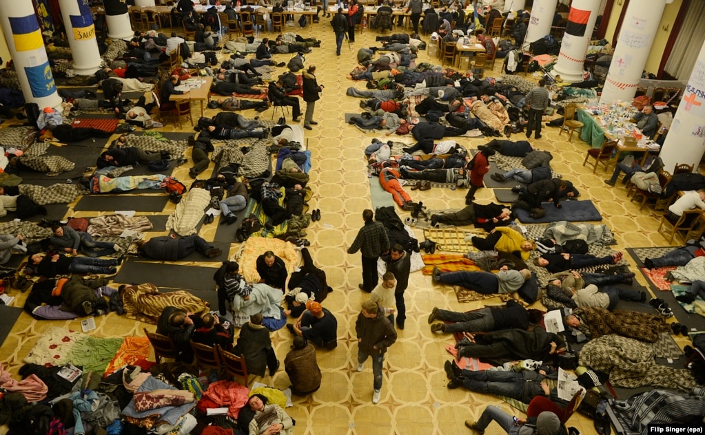 В ночь с 18 на 19 февраля во время штурма Дома профсоюзов в нем начался пожар, на Майдане продолжалось противостояние.