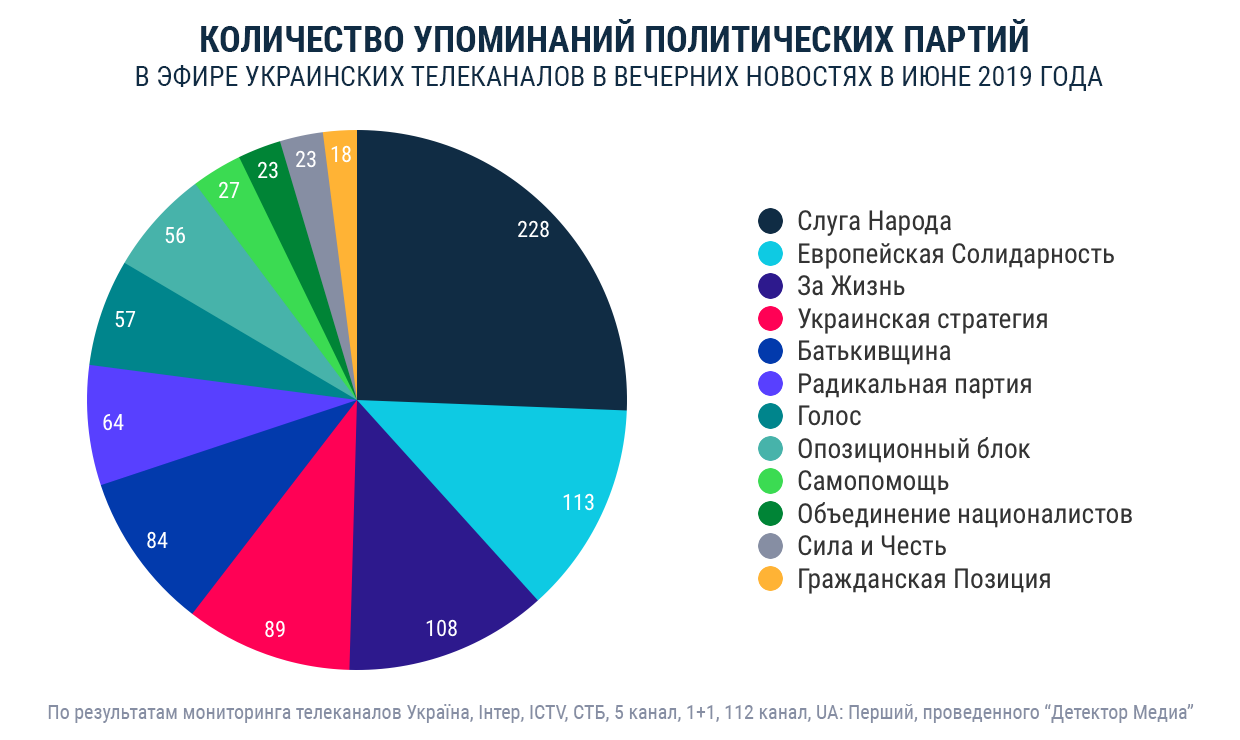 Эта партия упоминалась в эфирах телеканалов 108 раз. 64 раза позитивно, один – негативно. Позитивно – на "Интере" и 111-м, негативно – на канале UA: Перший.