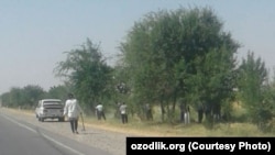 Водители, проезжающие по дороге Даштабад-Заамин, прислали в редакцию узбекской службы Радио Свобода фотографии уличных работ. По словам некоторых, задействованы были сотни людей.