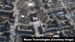 Так выглядит драматический театр в Мариуполе после авиаудара на новом спутниковом снимке Maxar.