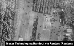 Новостное агентство Reuters опубликовало спутниковые снимки с почти 150 единицами военной техники. По данным агентства, они расположены рядом с городом Хойники и вблизи Мозыря на юге Беларуси – в 32 км от границы с Украиной.