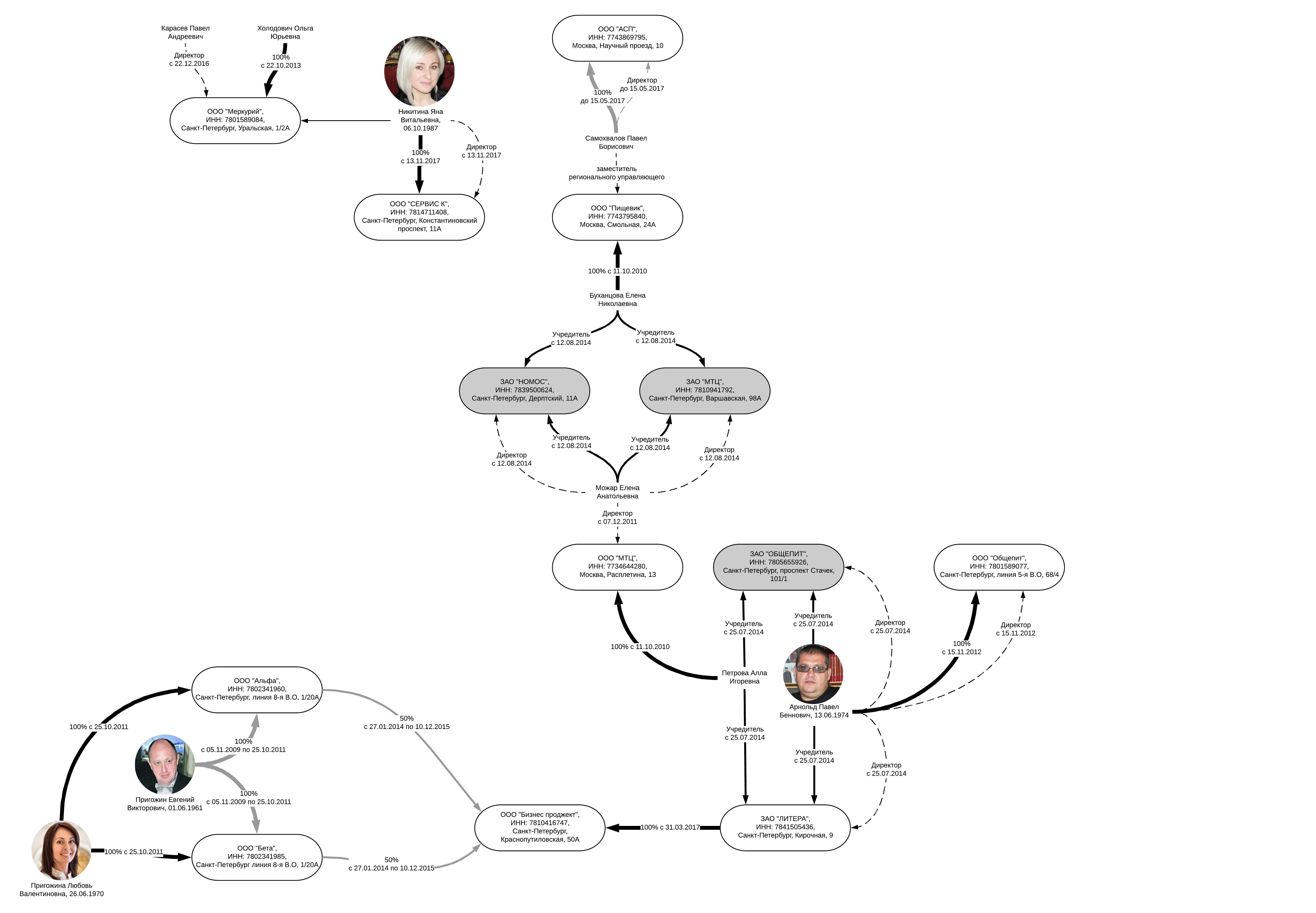 Директором «МТЦ» по документам является Елена Можар, которая вместе с Еленой Буханцевой открывала еще ЗАО «МТЦ» в 2014 году. Одновременно с ООО «Общепит» Павел Арнольд открыл и ЗАО «Общепит», которое с этим названием просуществовало до 2018 года. Взаимосвязь этих и других юридических лиц не вызывает сомнения.