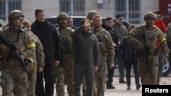 "Мы двигаемся вперед. Мы готовы к миру, миру для всей нашей страны", – сказал Владимир Зеленский, обращаясь к военнослужащим на главной площади города.